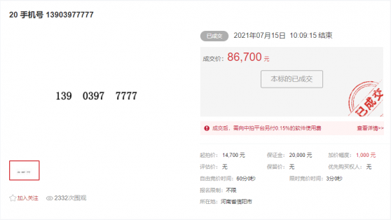 手机靓号拍卖