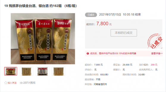 残损茅台镇金台酒、银台酒 约162箱 (6瓶/箱)