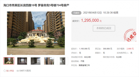 海口市秀英区长滨四路16号 罗曼帝克5号楼704号房产